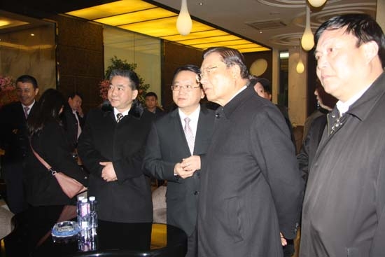 董事长孔令发(左一)、台企联副会长陈柏光(左二)、三三会长、原海基会董事长江丙坤(右二)淮南市委书记方西屏(右一)