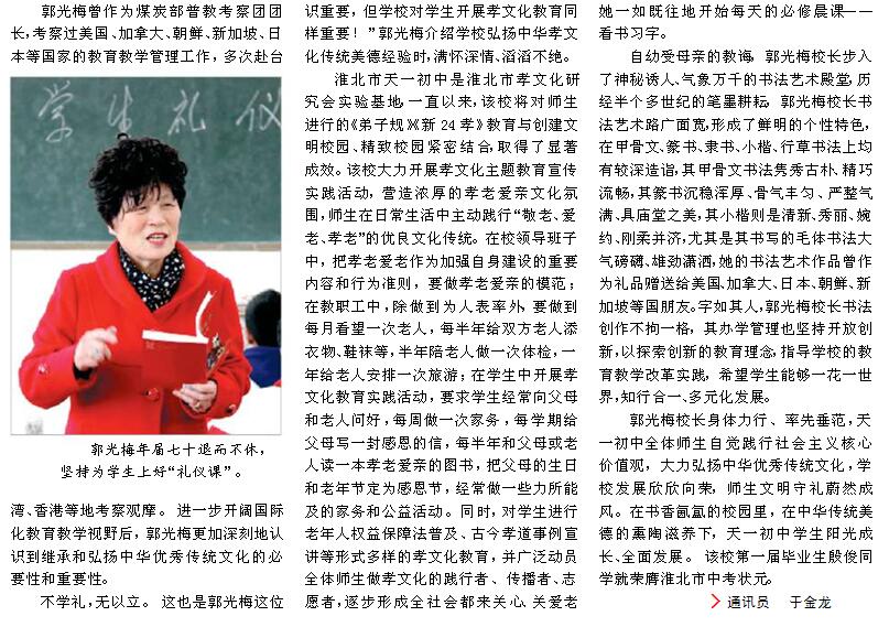 媒体报道:天一初中校长郭光梅崇“礼”树人立校魂 寄身于翰墨 醉心于教育